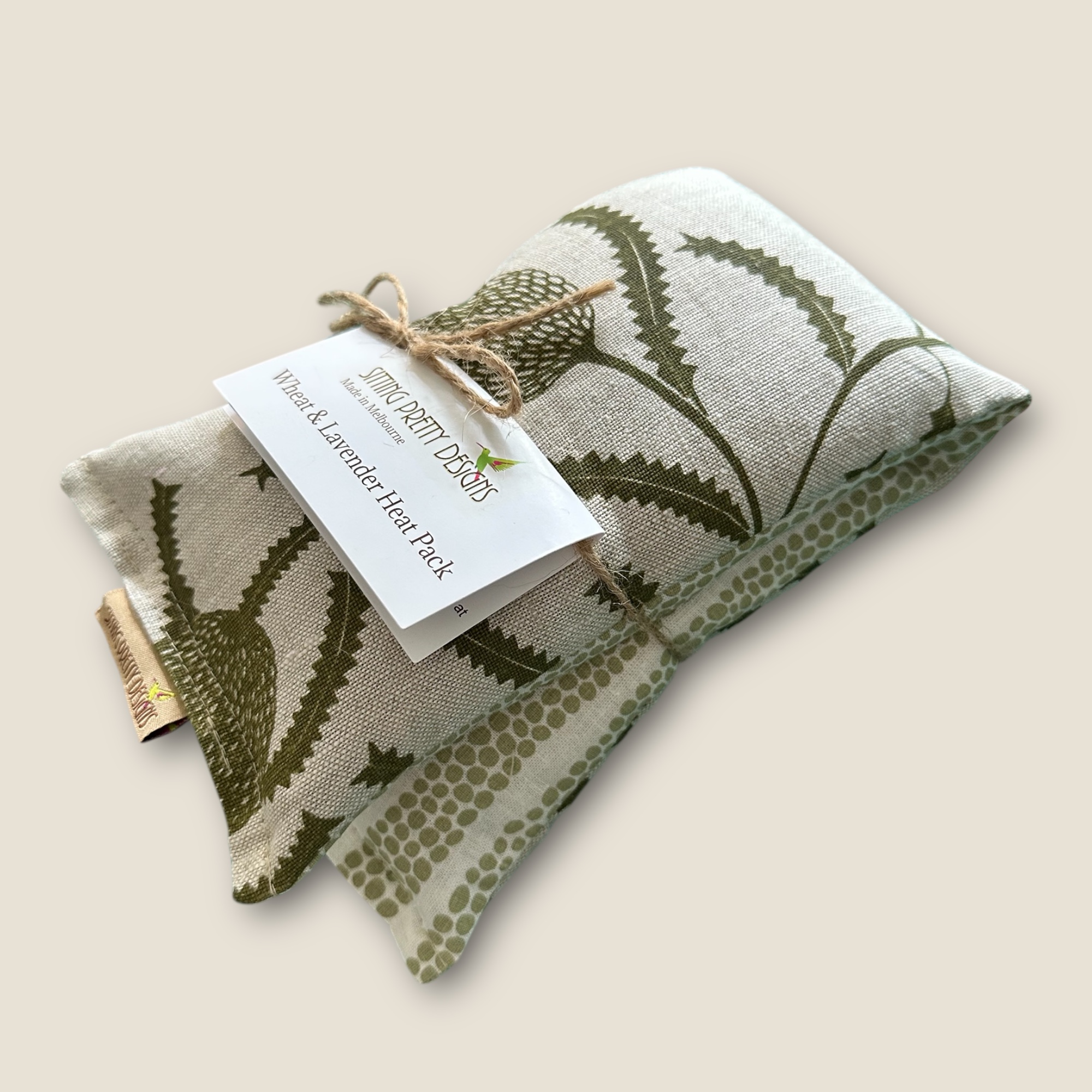 This lovely premium heat pack is made using eco linens that are screen printed at the Abbotsford Convent.